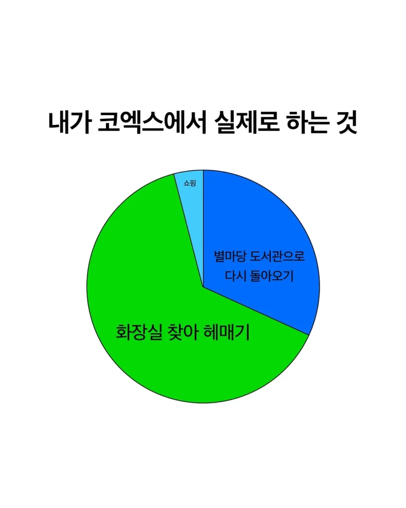 실내 길찾기 기능 홍보 사례: '코엑스에서 내가 실제로 하는 일'로 '화장실 찾아 헤매기'를 높은 비율로 그려 유저의 '미세한 불편함'에 공감 후킹을 했습니다. 이후 자연스럽게 네이버 지도의 실내 편의시설 위치 안내 기능을 홍보하며 홍보 목적을 달성했습니다.