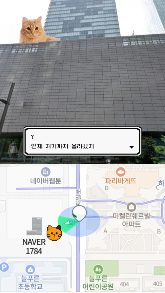 콘텐츠는 귀여운 동물 영상으로 시작됩니다. 경계 없이 밈과 트렌드를 즐기고 있을 때쯤, 자연스럽게 네이버지도의 메시지로 (이벤트 공지, 핵심 기능 홍보 등)으로 넘어갑니다.