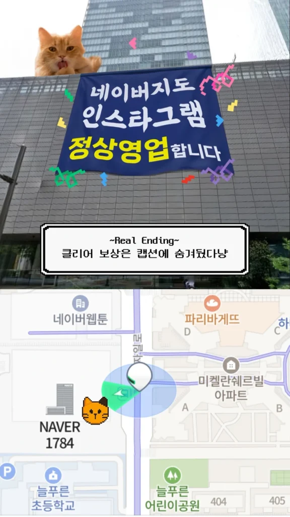 카드뉴스를 끝까지 본 유저들에게는 보상도 확실하게(?) 합니다. 출처 = @navermaps_official 인스타그램