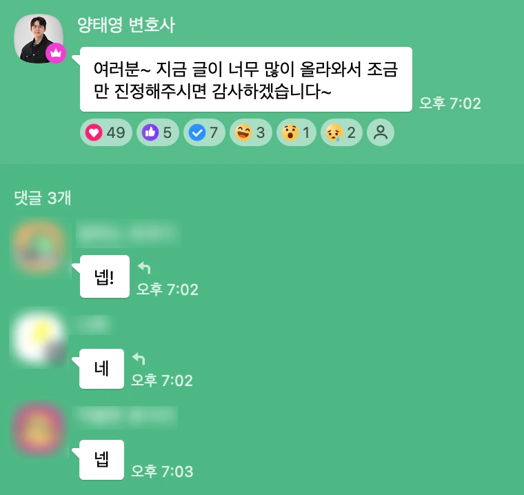그럼에도 이번 이벤트는 꽤 성공적이라고 봅니다. 이번 이벤트에서 가장 중요한 KPI였을 '댓글' 기능의 홍보를 통해 유의미한 댓글이 생성되었고, 이벤트가 종료되었는데도 인원들은 방에 남아 서로의 소통을 이어가고 있기 때문입니다. 저는 이번 사례를 통해 부정 이슈를 어떻게 다뤄야할지 생각해보았습니다.