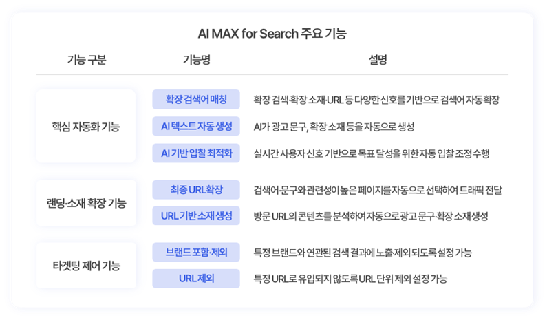 기존 키워드 중심 운영에서 벗어나, AI가 다양한 의도 기반 조합을 테스트해 전환 가능성을 높이는 구조이죠.