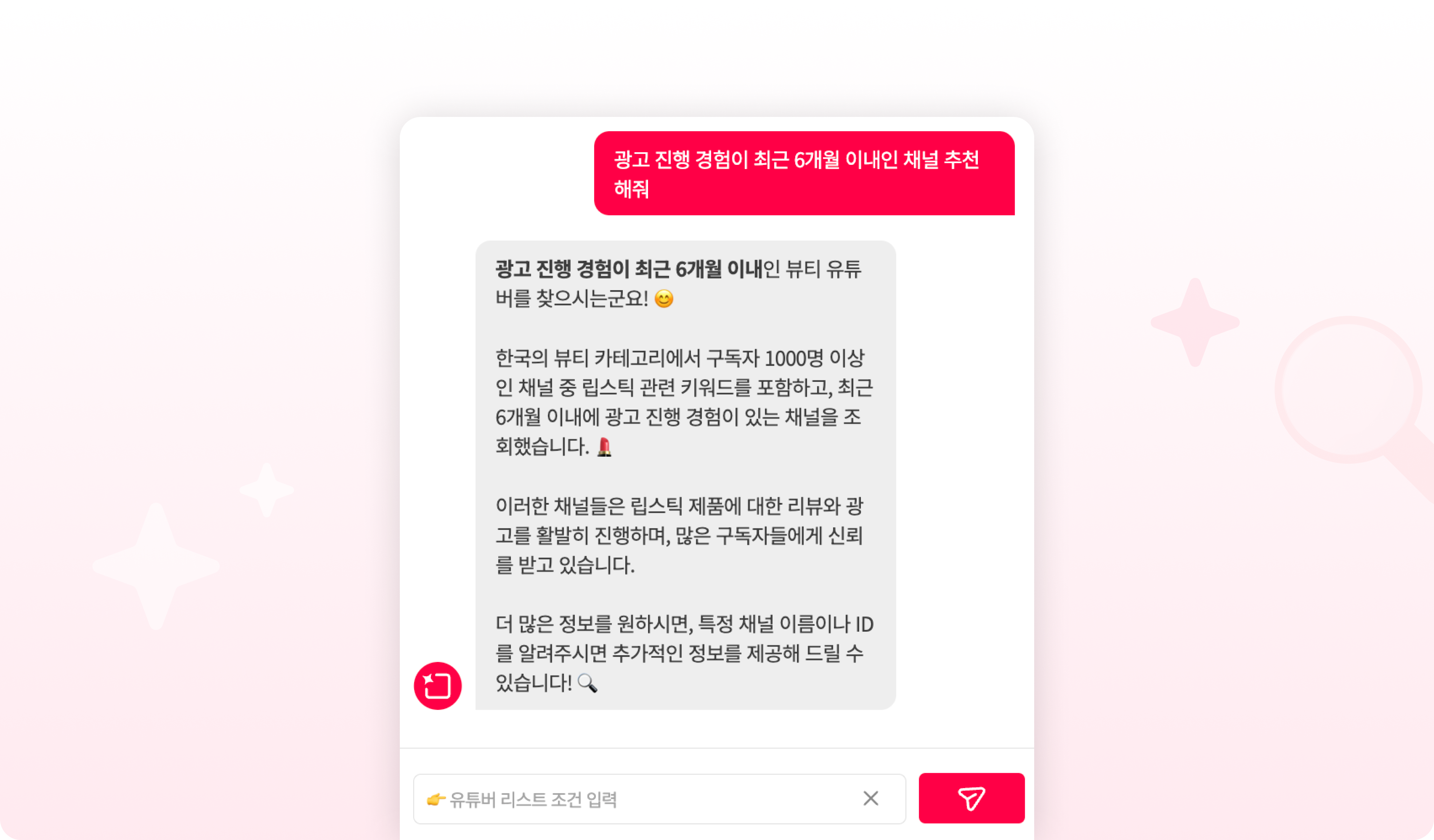 👉 “우리 브랜드에 맞는 유튜버를 찾아주세요.”