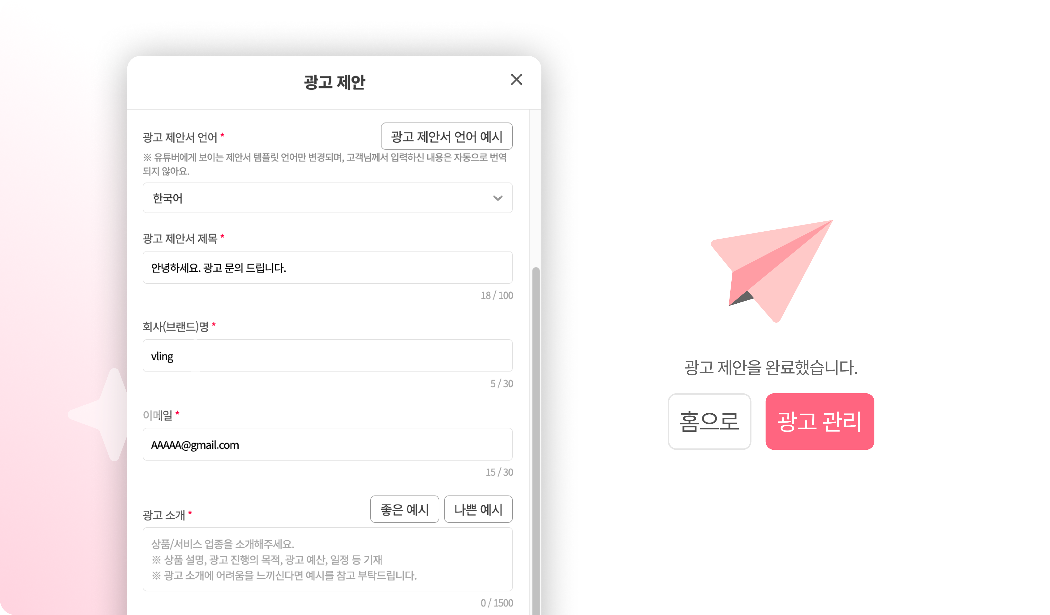 - 채널명·카테고리·이전 광고이력에 따라 개인화된 제목 자동 생성