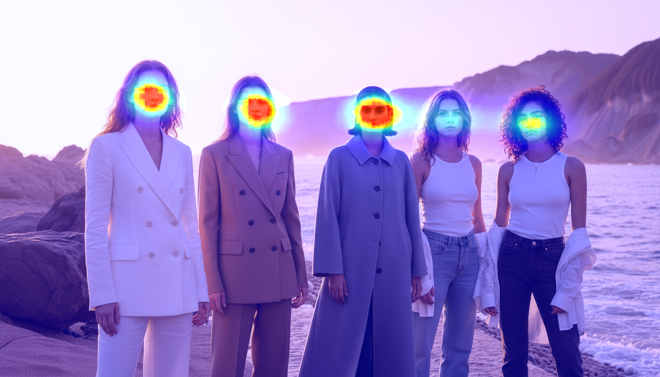 - 객체별 주목도 측정: 모델, 제품, 로고, 텍스트 등 각 요소가 의도한 만큼의 주의를 끌고 있는지 확인합니다. (솔루션 내 수치화)