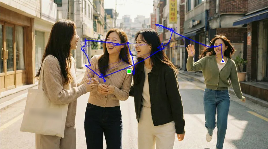 위와 같이 스토리보드 단계에서 AI 시선 추적을 돌려봤는데 시선이 엉뚱한 오브제에 머문다면, 우리는 즉시 레이아웃을 수정해야 합니다. 맨 좌측에 위치한 여성이 주인공이지만 엉뚱한 엑스트라들에게 주목이 집중되거나, 맨 우측에서 달려오는 여성에게 시선이 분산되는 등의 요소들을 예로 들 수 있겠습니다.