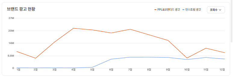 이는 특정 영상 하나가 성과를 견인했다기보다 여러 광고 영상이 고르게 조회수를 만들어낸 결과로 볼 수 있습니다.