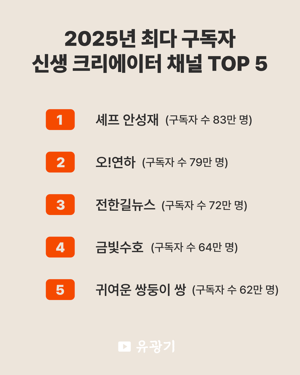 지금 [주간유광기] 뉴스레터를 구독하면 주 1회 무료로 유튜브 트렌드를 받아보실 수 있어요!
