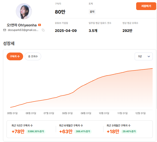 이 흐름이 유지된다면 앞으로도 추가적인 성장이 기대되는 채널입니다. 특히 아직 광고 집행 이력이 없는 상태이기 때문에 새로운 시도를 고민하는 브랜드라면 초기 협업 대상으로 검토해볼 만한 채널로 볼 수 있습니다.