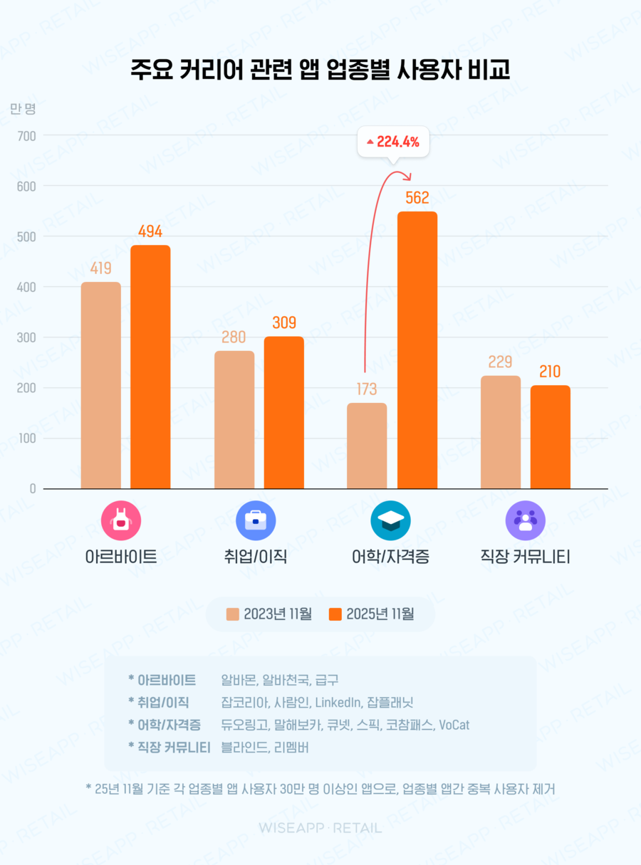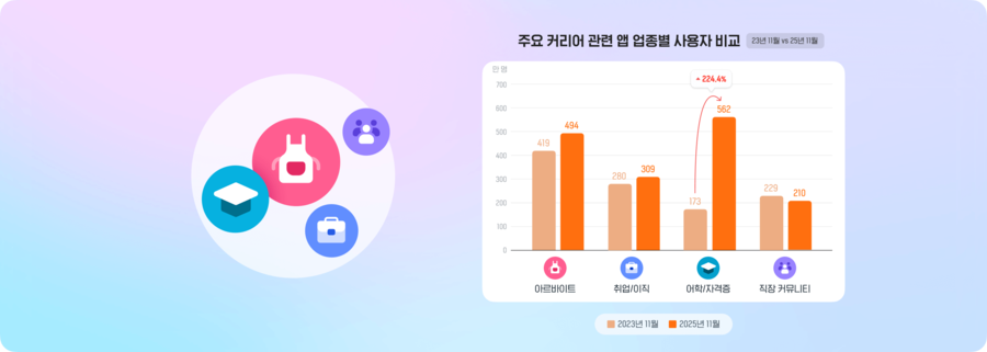 25년 11월 커리어 앱 동향: 새로운 시작을 위한 구직, 어학, 자격증, 직장 커뮤니티 앱 동향