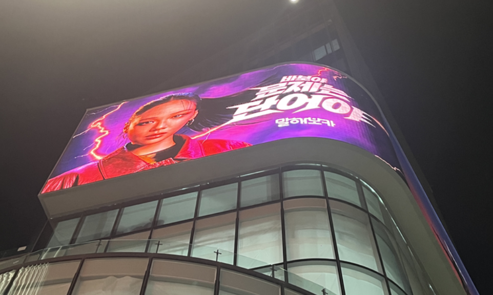 • 홍대 상권 옥외빌보드 – 트렌디한 MZ세대 밀집 지역 홍대 거리에도 옥외 광고를 집행했습니다. 특히 젊은층 유동인구가 많은 "홍대 코너 136" 빌보드 전광판에 캠페인 영상을 노출하여, “바보야, 문제는 단어야”라는 문구를 놀거리 많은 번화가 한복판에서도 반복 인지시켰습니다. 이는 브랜드가 젊은층이 모이는 현장에까지 스며들어 트렌디한 이미지를 강화하려는 전략적 시도로 볼 수 있습니다.