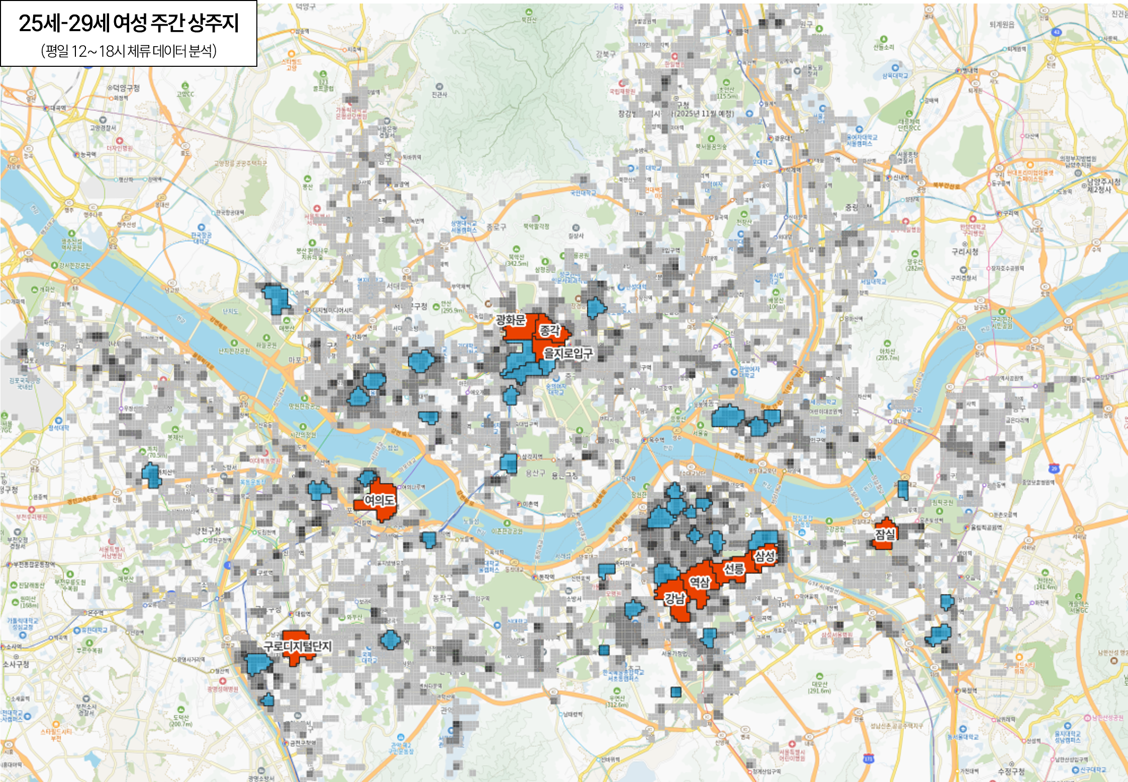 "서울에 20대 여성이 많은 곳"을 묻는다면 누구나 강남, 홍대, 성수를 떠올립니다.