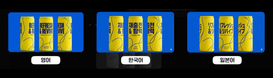 텍스트 역시 원하는 문구를 그대로 입력하면 비교적 정확하게 변경됩니다. 기존 강조 효과나 레이아웃도 함께 유지되는 점이 인상적입니다. 카피만 바꾼 여러 버전을 빠르게 생성해 메시지 A/B 테스트용 소재를 제작하는 데에도 활용도가 높아 보입니다.