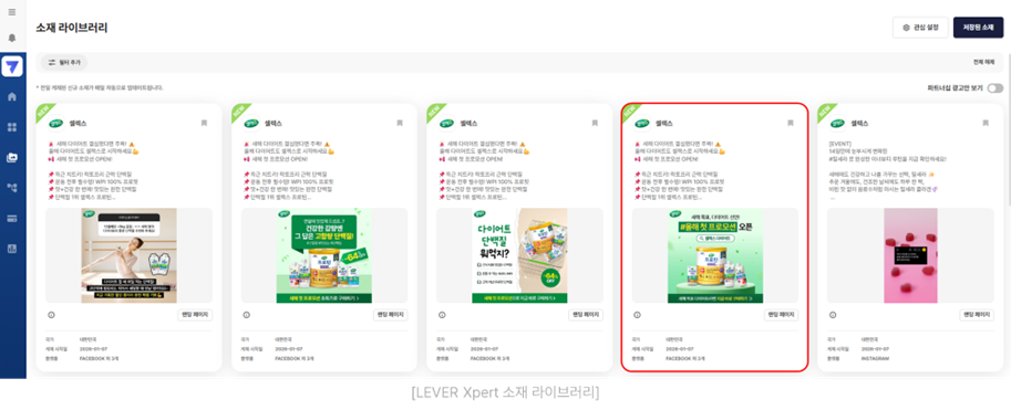 먼저 페이스북이나 LEVER Xpert 소재 라이브러리, 핀터레스트 등에서 레이아웃이 마음에 드는 이미지를 하나 골라주세요. 우리는 이제 이 이미지를 기준으로 광고 소재의 주요 구성 요소를 하나씩 바꿔볼 예정입니다.
