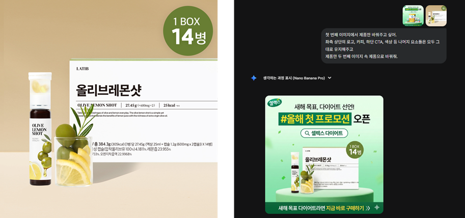 그렇다면, 이렇게 강력해진 나노바나나 프로를 광고 소재 제작에는 어떻게 활용할 수 있을까요?