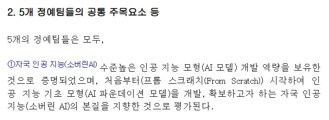 「독자 AI 파운데이션 모델」 프로젝트 발표평가 결과 보도자료 (출처 : 대한민국 정책브리핑)