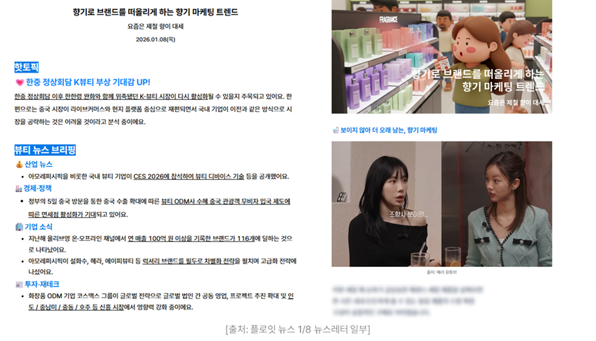 플로잇 뉴스는 뷰티 뉴스 브리핑과 함께, 매주 하나의 주제를 선정해 세부 트렌드와 실제 사례를 깊이 있게 다룹니다. 특히 K-뷰티 유통 업계 중심의 콘텐츠가 많아, 유통·커머스 관점의 인사이트가 필요한 분들에게 추천드립니다.