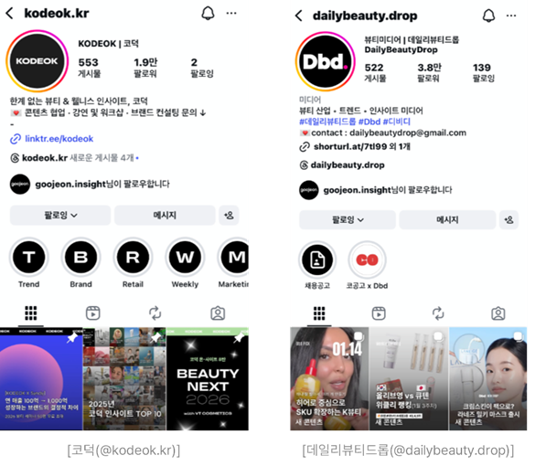 💡인사이트 중심 - 코덕(@kodeok.kr), 데일리뷰티드롭(@dailybeauty.drop)
