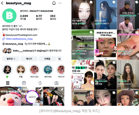 🕶️콘텐츠&밈 중심 - 팝뷰(@pop.beau) & 뷰티어쓰(@beautyus_mag)