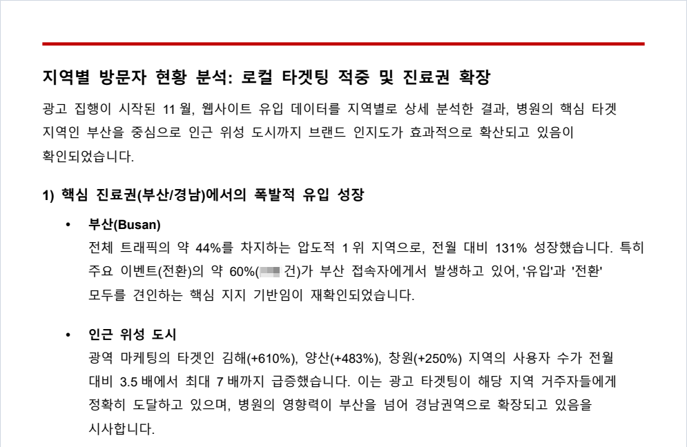 이 글은 A안과 11월 월간보고서에 담긴 내용을 바탕으로, 11월 한 달 동안 병원 마케팅에서 어떤 일들이 있었는지, 광고와 홈페이지, 환자 유입에 어떤 변화가 있었는지, 이 변화가 병원 운영에 어떤 의미를 가지는지를 원장님 입장에서 이해하기 쉽게 풀어 설명한 글입니다.