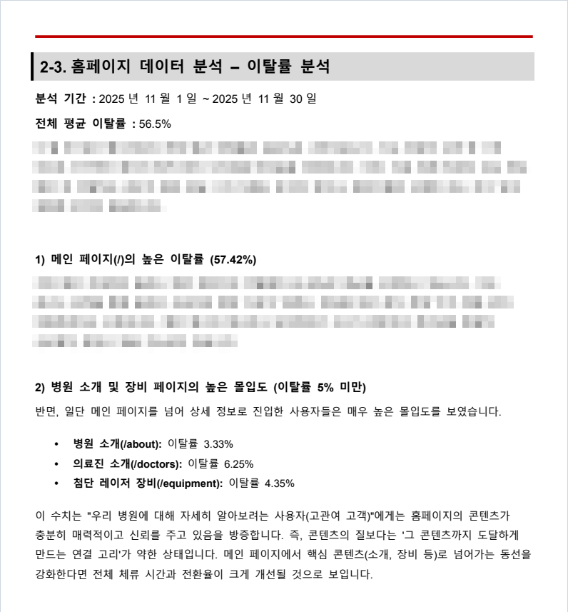 유입은 정상적으로 늘고 있고, 병원 콘텐츠에 대한 신뢰도도 높은 편이며, 이제 구조를 조금 더 다듬을 단계에 와 있다.