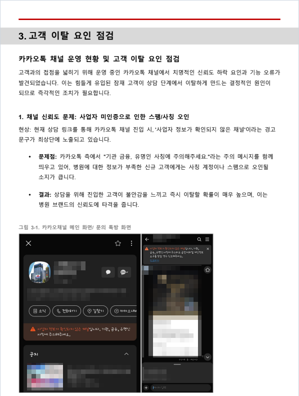 보고서에서는 좋은 점뿐 아니라 이탈 가능성이 있는 요소도 명확히 짚고 있습니다.