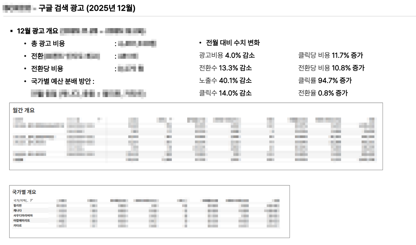 12월에는 이 데이터를 바탕으로, 전환 퍼널 점검, 문의 기준 재정의 ‘양보다 질’ 중심의 운영 판단으로 이어졌고, 광고는 단순 유입 수단이 아니라 해외 영업 구조의 일부가 되었습니다.