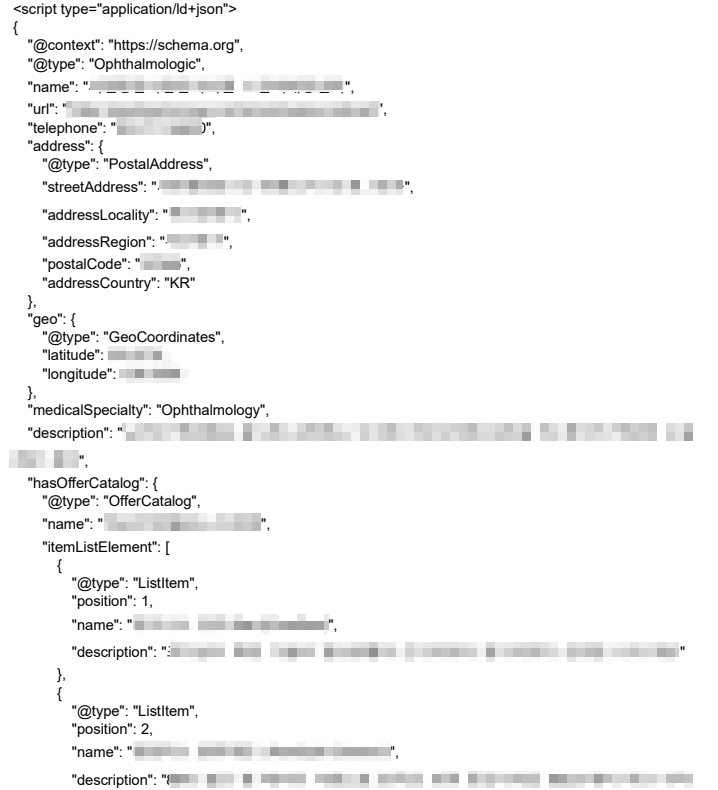 1월 작업에서는 주요 진료 페이지에 다음과 같은 구조화 데이터를 적용했습니다.