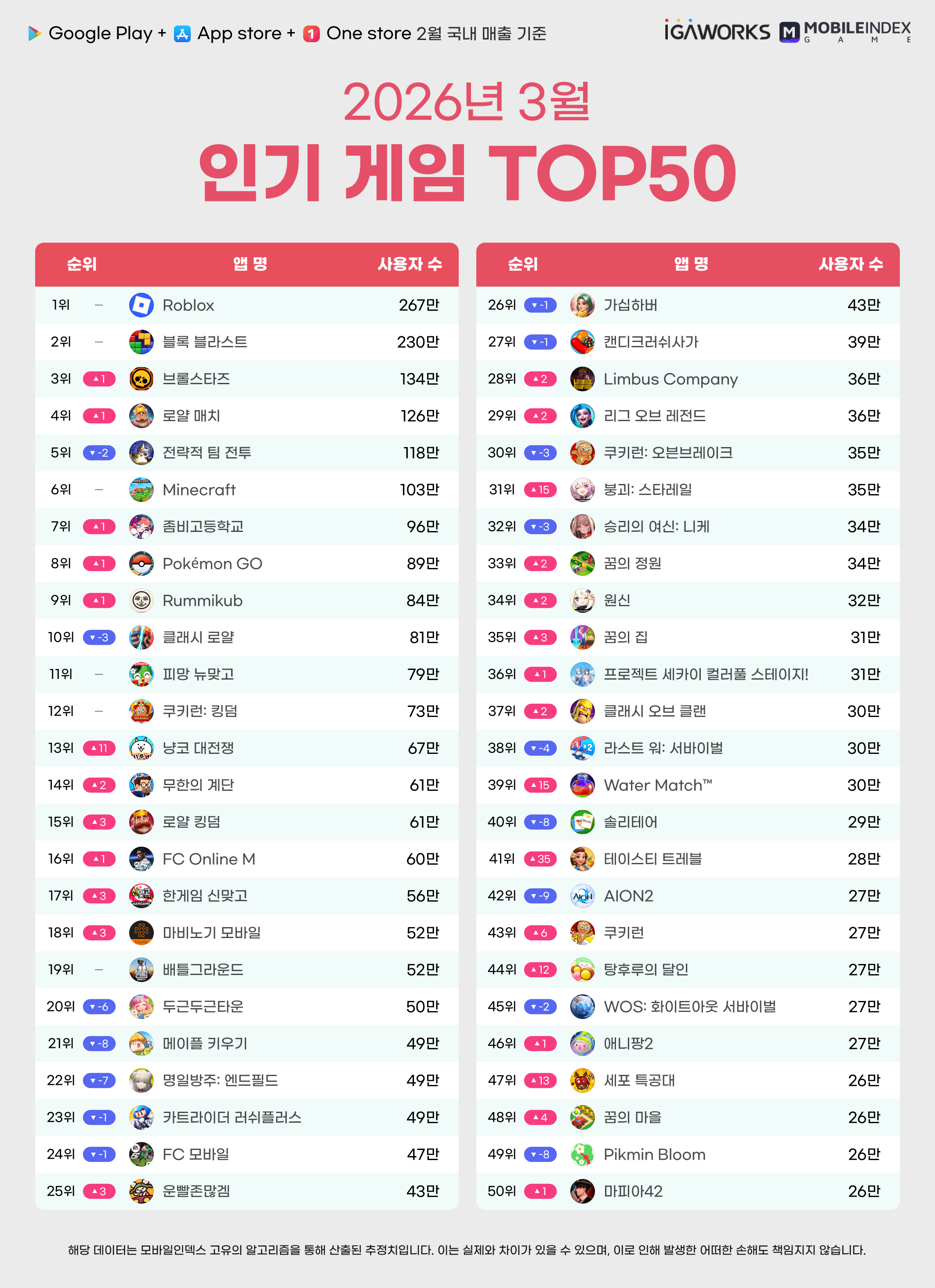 26년 3월 인기 모바일 게임 순위