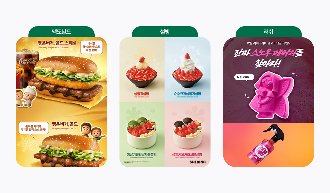 비단 식품에만 한정된 것은 아닌데요. 러쉬의 ‘스노우 페어리’ 역시 매년 겨울 고객을 사로잡는 대표 라인업 중 하나입니다. 스노우 페어리를 맡아야만 겨울이 완성된다는 말이 있을 정도로 수년째 하나의 제품으로 브랜드의 가치를 상승시키고 있어요. 매년 같은 향과 비슷한 콘셉트로 돌아오지만, 그 일관성은 오히려 브랜드의 가치를 이끌고 강력한 팬덤을 유지하는 비결이 됩니다. 단순히 제품을 파는 것을 넘어 계절을 선점하고, 연말의 분위기를 완성하는 특별한 브랜드 경험을 제공하고 있는 셈인 거죠.