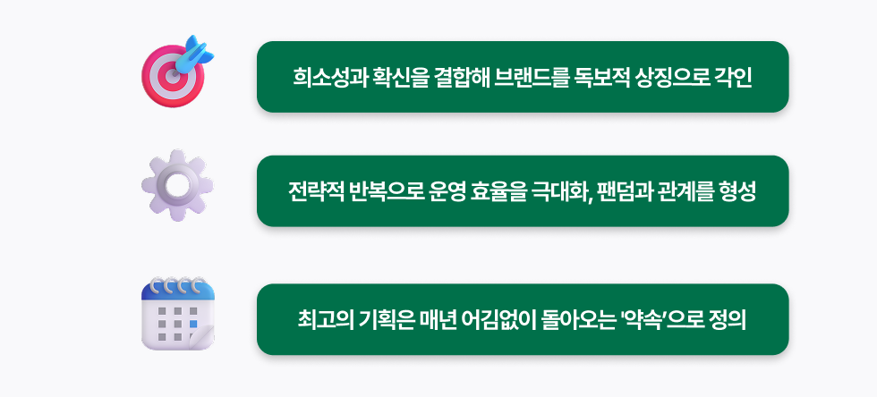여러분의 브랜드에는 고객이 매년 고개를 들어 찾게 될 '그 무엇'이 있나요? 결국 최고의 기획은 화려한 기술이 아니라, 고객의 일상 속에 깊이 뿌리 내린 상품 그 자체에 있습니다.