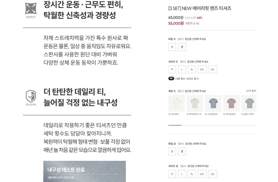 예) 안다르는 티셔츠 3장 SET 상품 상세페이지에서 '등산, 헬스, 일상에서 모두 활용할 수 있다'는 메시지를 강조합니다.