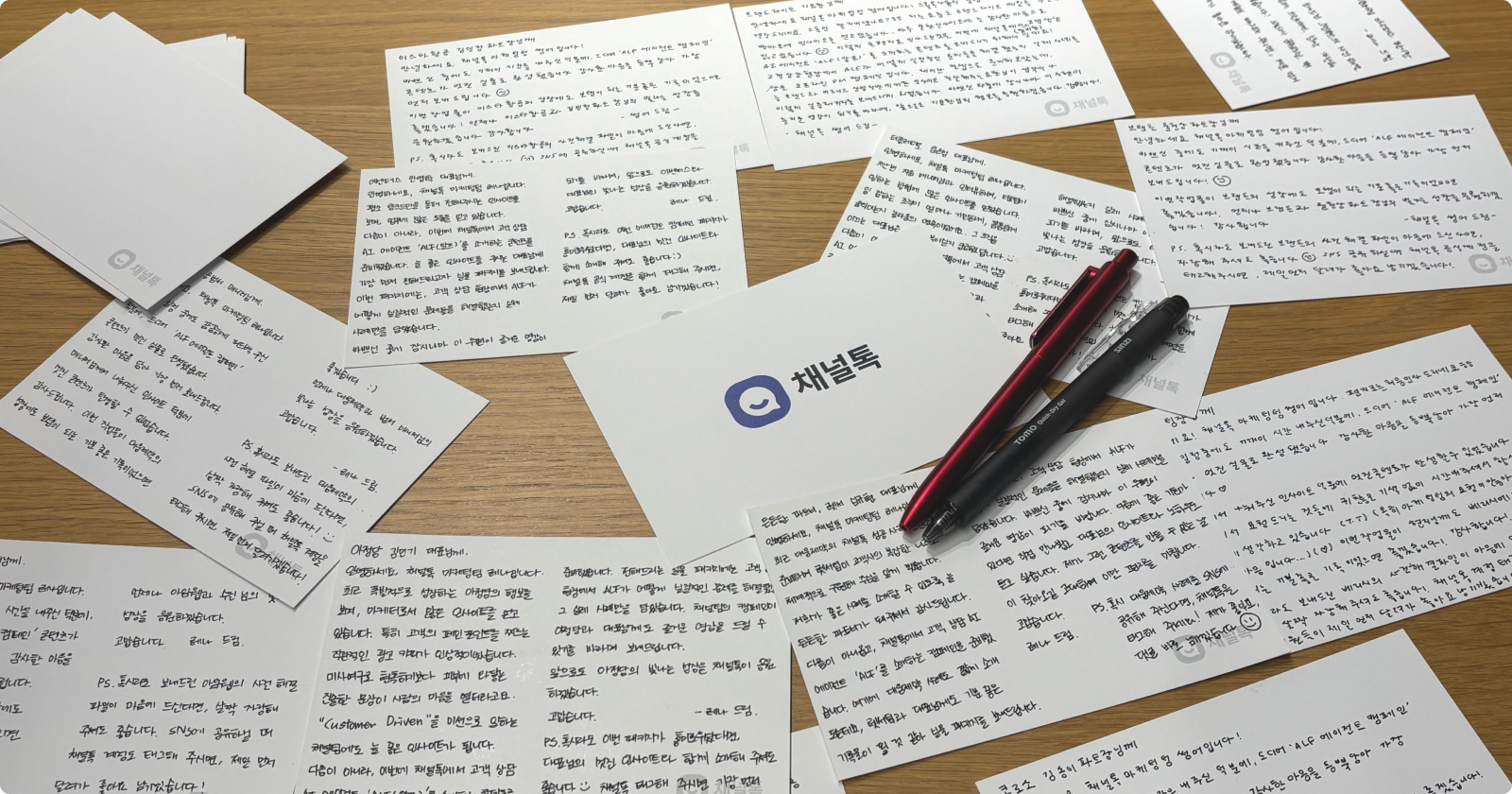 좋은 성공 사례를 흔쾌히 공유해 준 고객사와 그동안 좋은 관계를 유지해 온 파트너사, 채널톡의 활동을 늘 응원해 주신 크리에이터 및 인플루언서분들께 직접 편지를 쓰는 비효율을 감행합니다. 손 편지를 받으면 <ALF 에이전트 캠페인>을 알리는 데 힘을 보태주실 것이라 기대했습니다. 한 글자 한 글자 눌러 적은 손 편지야말로 비효율이 만드는 감동의 정수니까요.