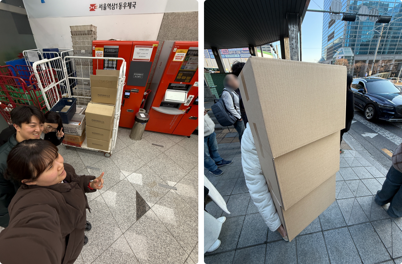 네, 우편을 보내는 건 엄청난 비효율입니다. 콘텐츠를 만들고 인쇄하고, 포장하고, 발송하기까지 많은 사람의 손길이 필요합니다.