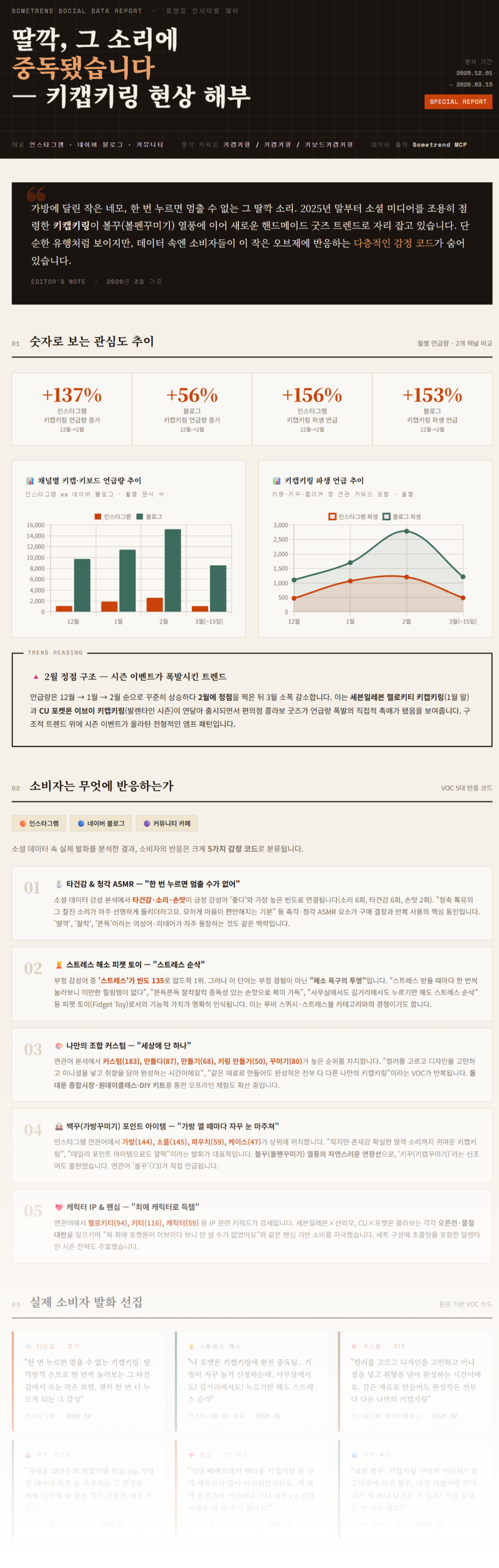 ✅ 주목 포인트 1 키캡 인스타그램 언급량이 2026년 2월 137% 급증했으며, CU 포켓몬·세븐일레븐 헬로키티 콜라보가 오픈런·품절 대란을 일으키며 확산을 가속화 했습니다.
