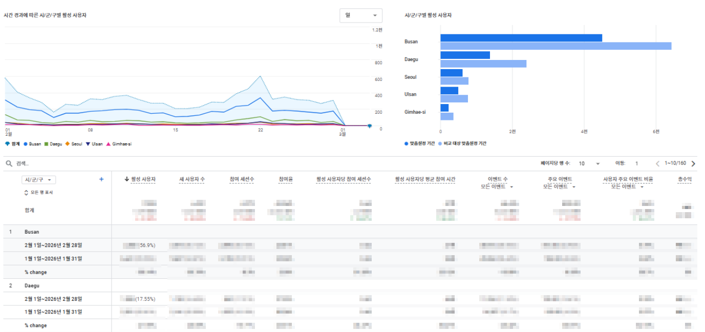 예산 배분, 광고 문구, 랜딩페이지 구성, 블로그 주제, 지도 기반 최적화까지 전부 지역 데이터 위에서 움직여야 합니다. 부산 비중이 높다면 부산 중심 문구와 진료 니즈에 맞는 콘텐츠를 더 정교화할 수 있습니다. 반면 대구 유입이 17.55%나 잡힌다면, 이 유입이 단순 노출인지 실제 상담 가능성이 있는 관심 유입인지 추적해볼 가치가 있습니다.