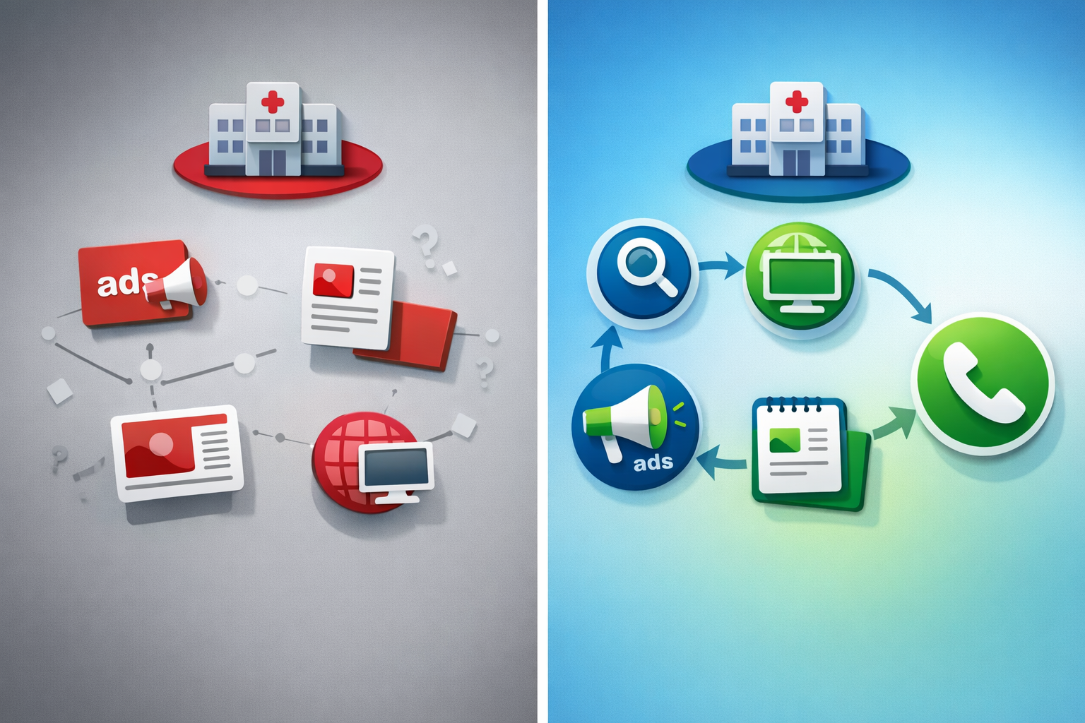 어떤 캠페인은 신규 수요를 넓게 발굴하고, 어떤 캠페인은 고의도 검색자를 직접 전환시키는 역할을 합니다. 병원 마케팅에서 중요한 것은 하나의 캠페인으로 모든 걸 해결하려는 것이 아니라, 이 역할 분담을 명확히 하는 것입니다.