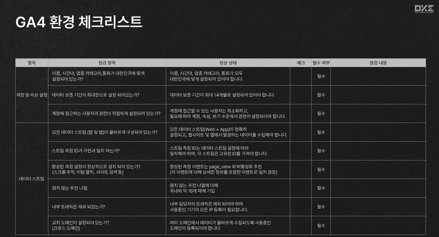 - [DXE] GA4 환경 진단 체크리스트.pdf 파일 다운로드