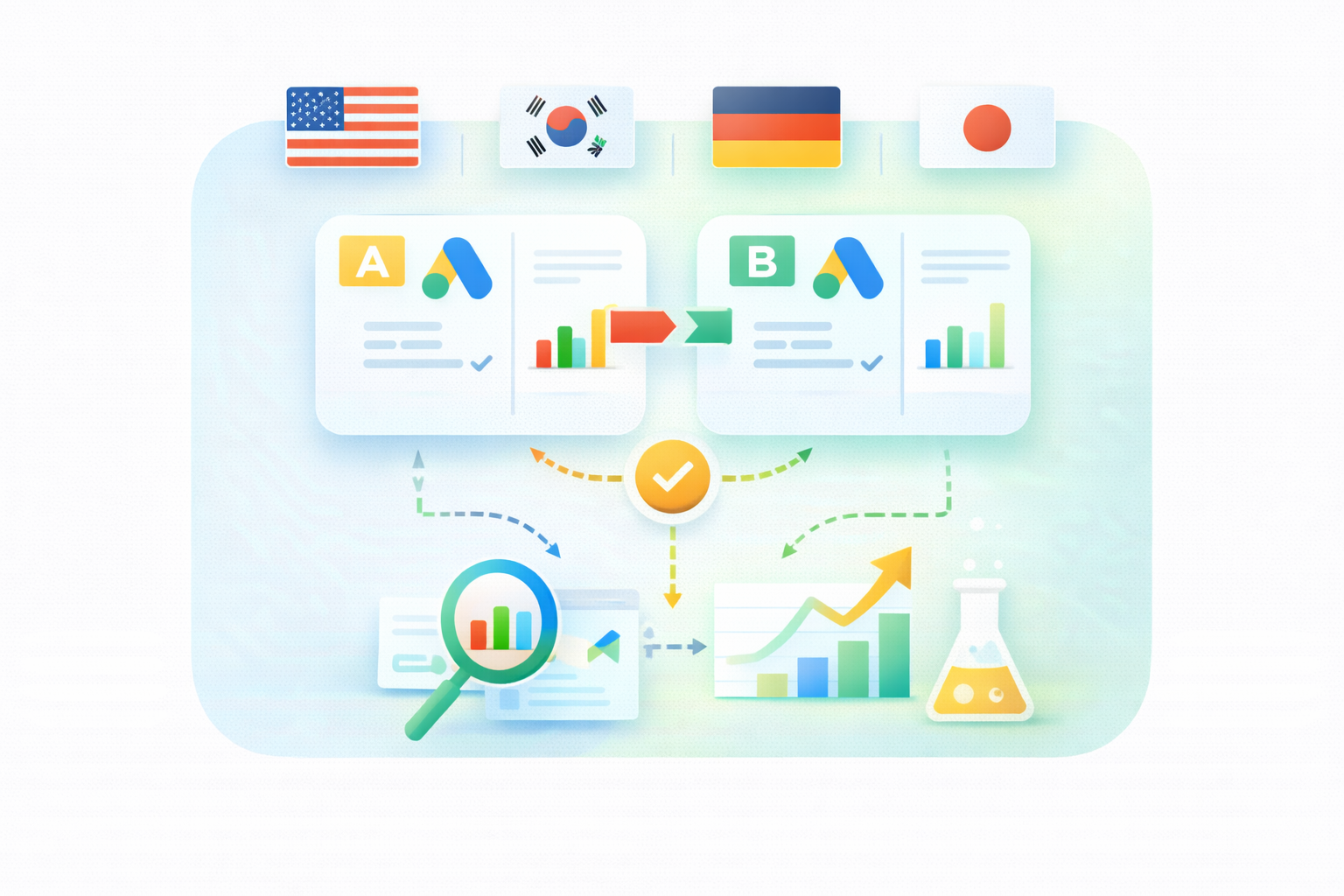 어느 국가에서 반응이 있는지, 어떤 검색어가 전환 가능성이 높은지, 어떤 문구가 클릭을 이끄는지, 어떤 랜딩페이지가 고객을 머물게 하는지를 데이터로 확인할 수 있게 해줍니다.