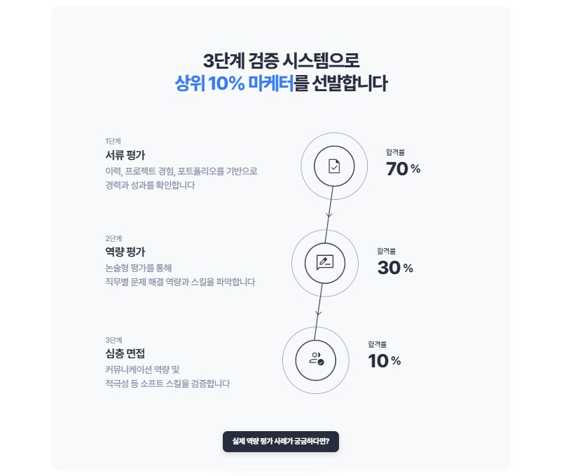 1) 프리랜서 매칭 플랫폼 원포인트는 전문가를 선별하는 자신들의 깐깐한 기준을 랜딩페이지에 내세웁니다.