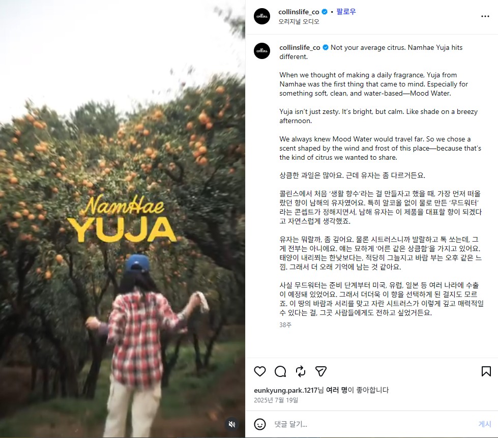 2) 콜린스는 제품을 만들어가는 과정을 브랜드가 아닌 '사람'의 목소리로 인스타그램에 공유합니다.