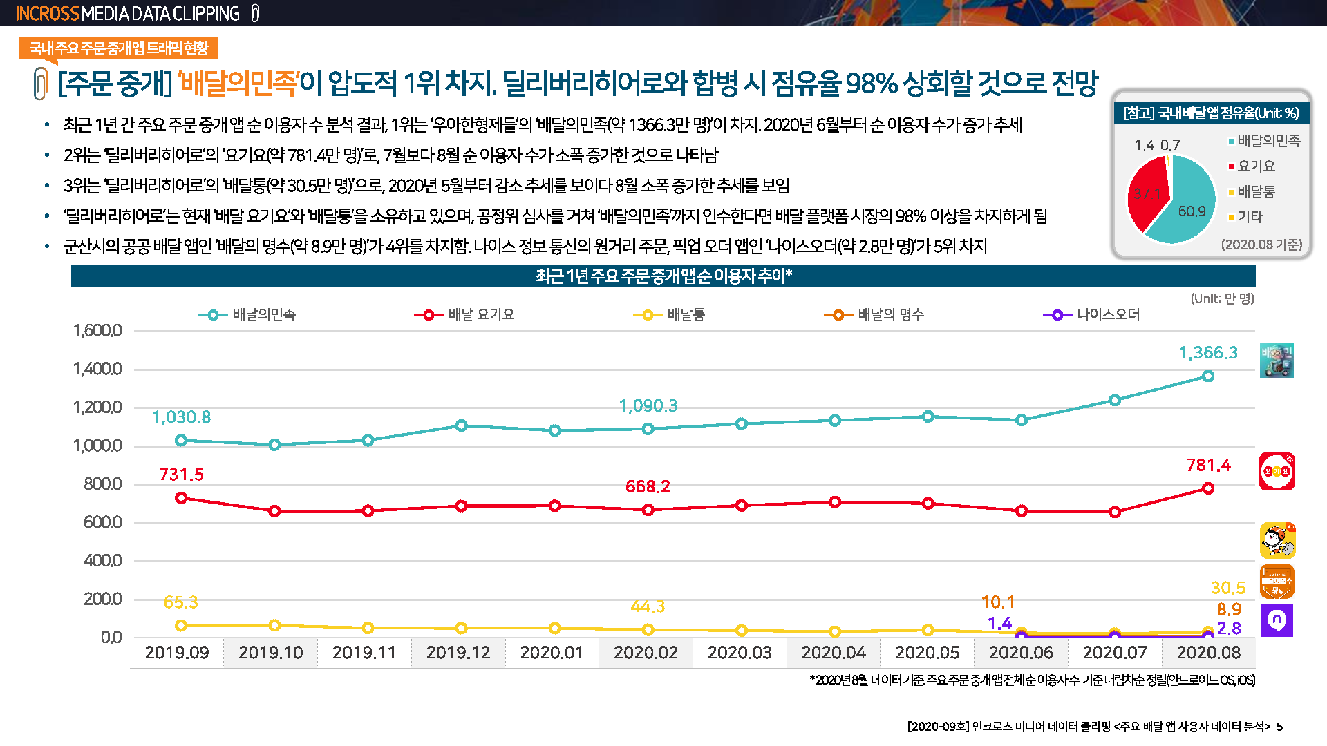 2020년 9월 인크로스 미디어 데이터 클리핑 - 배달·주문 앱 편