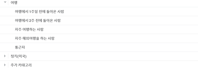 여행 관련 비즈니스의 경우 특히 이 행동 타게팅을 유용하게 사용하실 수 있는데요, 여행에서 1주일 전에 돌아온 사람, 여행에서 2주일 전에 돌아온 사람, 자주 여행하는 사람 등을 타겟할 수 있습니다.