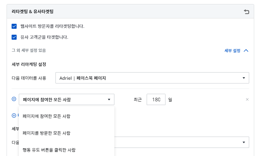 <아드리엘에서 맞춤 타겟 설정하는 화면>