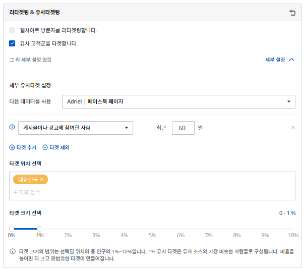 <아드리엘에서 유사 타겟 설정하는 화면>