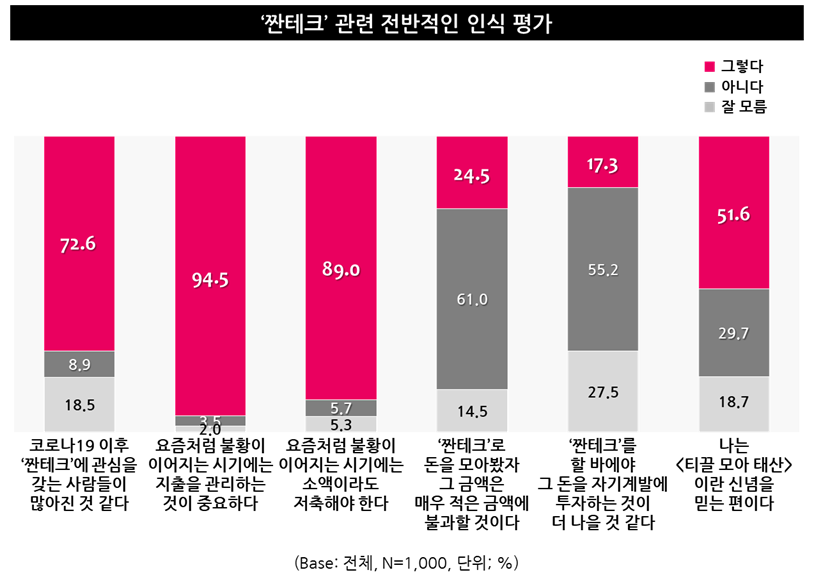 72.6% "코로나 발생 이후 짠테크에 관심 갖는 사람들 많아진 것 같다"