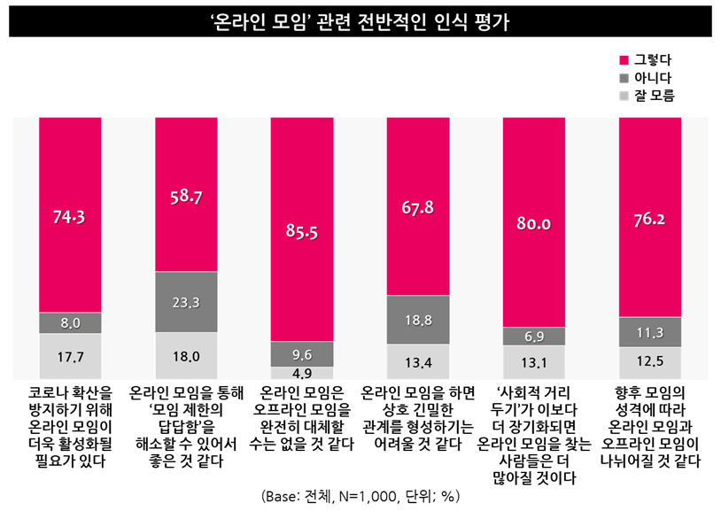 그러나 85.5% “오프라인 모임을 완전히 대체할 수는 없을 것 같다”
