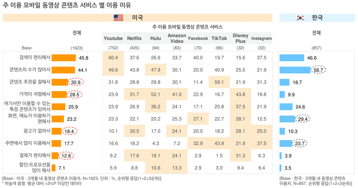 미국·한국 소비자가 주 이용 서비스 선택하는 이유