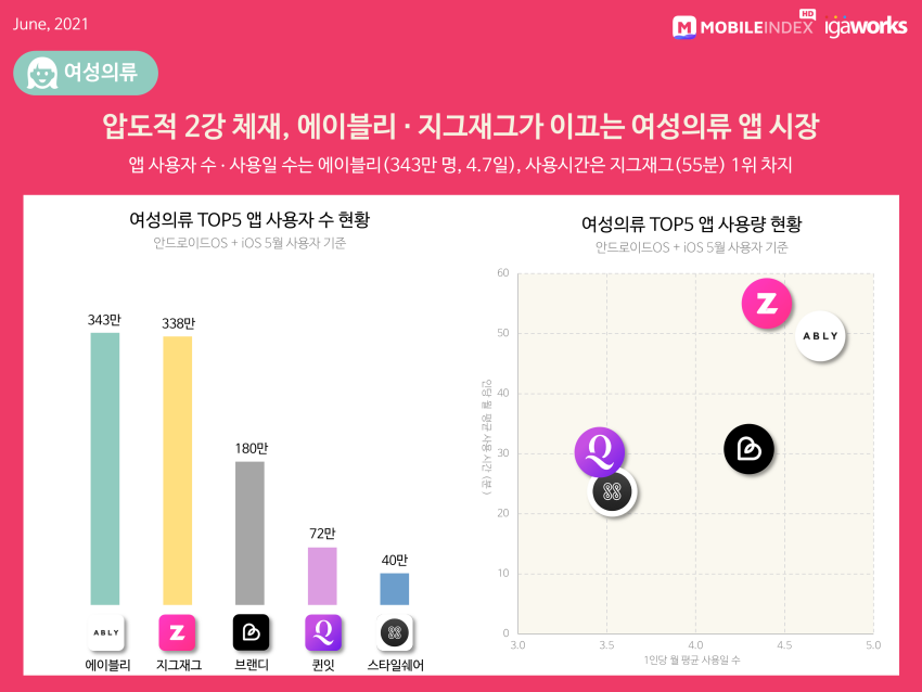 2. 압도적 2강 체재, 에이블리 · 지그재그가 이끄는 여성의류 앱 시장