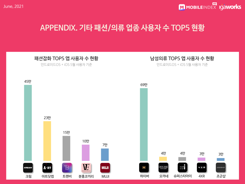 APPENDIX. 기타 패션/의류 업종 사용자 수 TOP5 현황