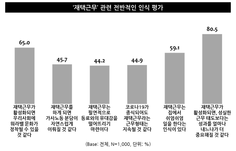 - 그러나 “코로나 종식 후에도 재택근무가 지속될 것 같다”는 기대 높지 않아